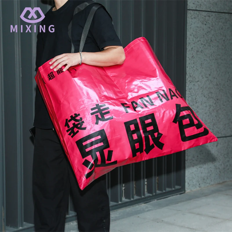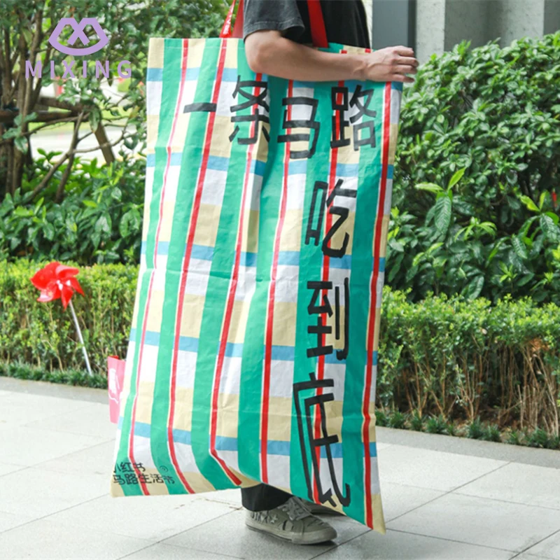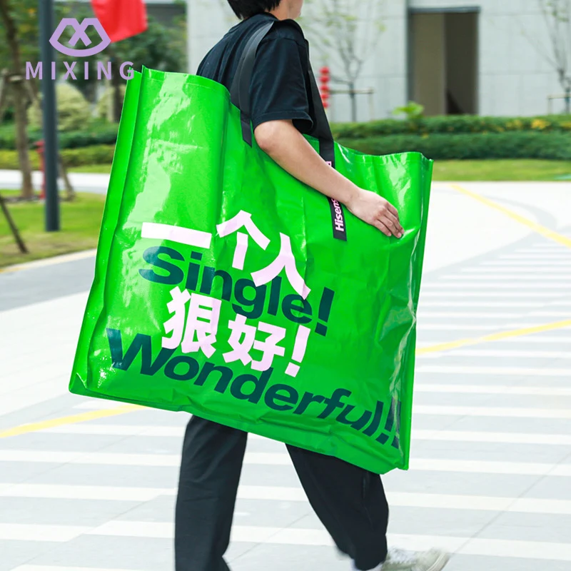 Velkommen til at købe Mixings tilpassede Giant PP Woven Bag. Uanset om du skal sortere dit sengetøj, tøj og GRYDER og pander, når du flytter, eller skal have fat i snacks og daglige fornødenheder, når du handler i supermarkedet, eller tage på camping udendørs i weekenden med klapborde og stole, telte og måltider, kan den vævede PP-pose produceret af Mixing alt sammen pakkes på én gang. Der er ingen grund til at pakke den i flere poser og flytte den frem og tilbage som normalt.