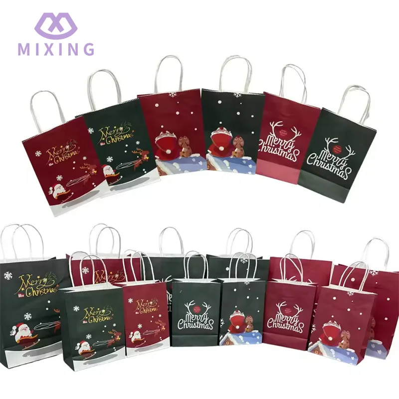 Engrosblandingspapir julegodtasker er et festligt og miljøvenligt nyt alternativ til at købe plastposer. De er perfekte til emballageferie snacks, små gaver eller festgunst, tilføjer et specielt touch til julefeiringer, der kombinerer praktisk med festlig charme.